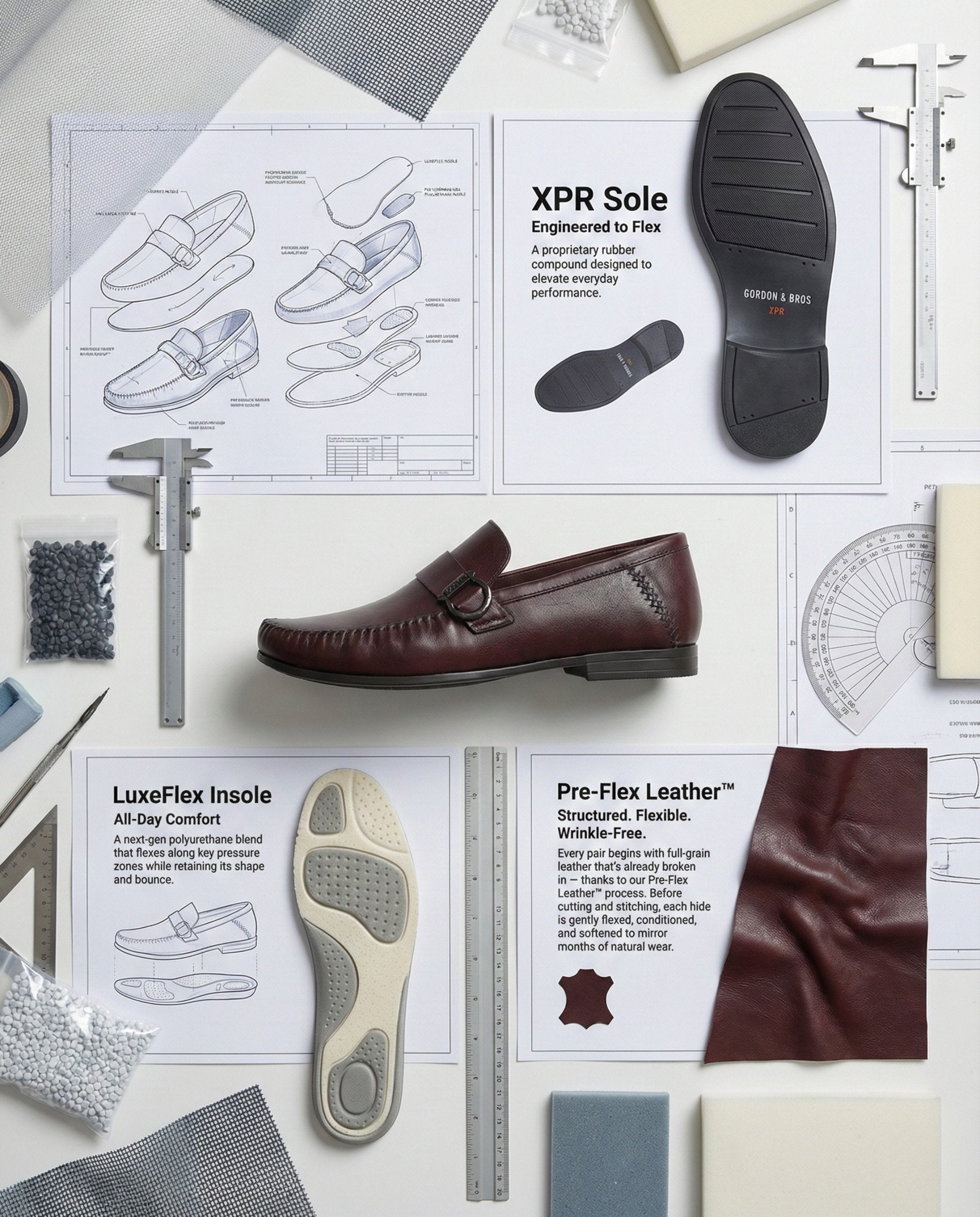 At Gordon & Bros, every pair is engineered with precision-where German craftsmanship merges with next-generation comfort technology. From our XPR™ sole system to engineered insoles and performance leathers, each shoe is built for comfort, durability, and longevity.
